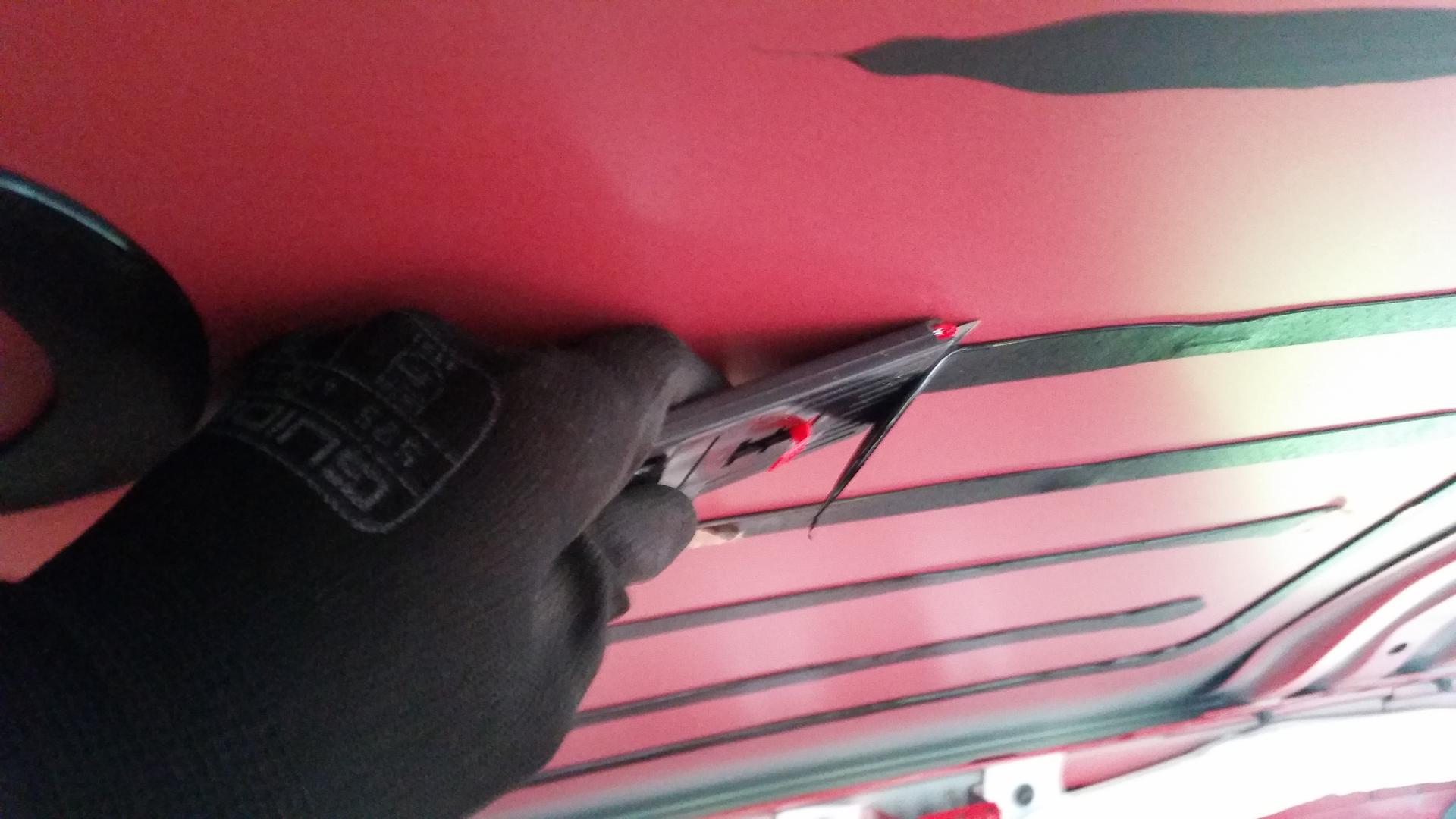 Kaiuttimien vaihdon yhteydessä tuli myös revittyä vanhat (puoliksi irronneet) äänieristeet ovista pois ja asennettua uutta tilalle. 2,2mm bityylimattoa ja päälle 8mm ääni/lämpöeriste mattoa. Autosta olinkin jo aiemmin vaimentanut lattian, takaluukun, hattuhyllyn sekä konepellin.